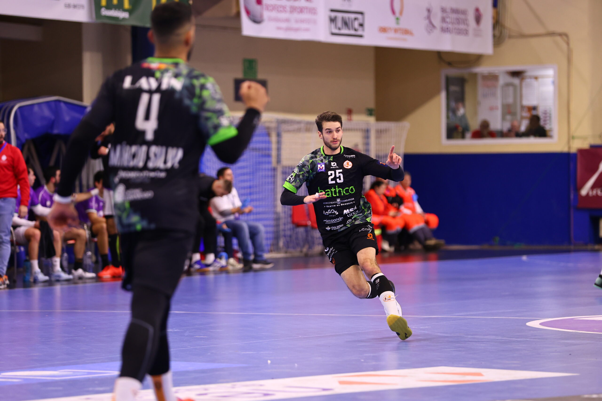 Con 13 – 14, Fekete fue excluido 2 minutos. Martínez lo castigó al momento. Una gran defensa naranja se convirtió en el 13 – 16, tras una gran asistencia de Isidoro a Ángel. La fatídica exclusión morada la seguía materializando un brutal Tercariol. Dos paradones consecutivos, neutralizando incluso el tiempo muerto de Requena, dispararon al Bathco BM Torrelavega al +5 cuando se llegaba al minuto 25 de juego.